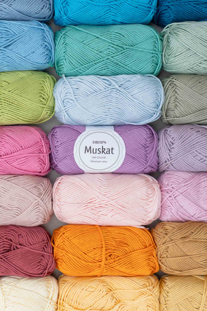 10 nøster Drops Muskat, med tilfeldig sammensatte farger og partinummer. Kanskje alle er like, kanskje alle er forskjellige. Tør du ta sjansen og se hva som venter i din lykkepose?