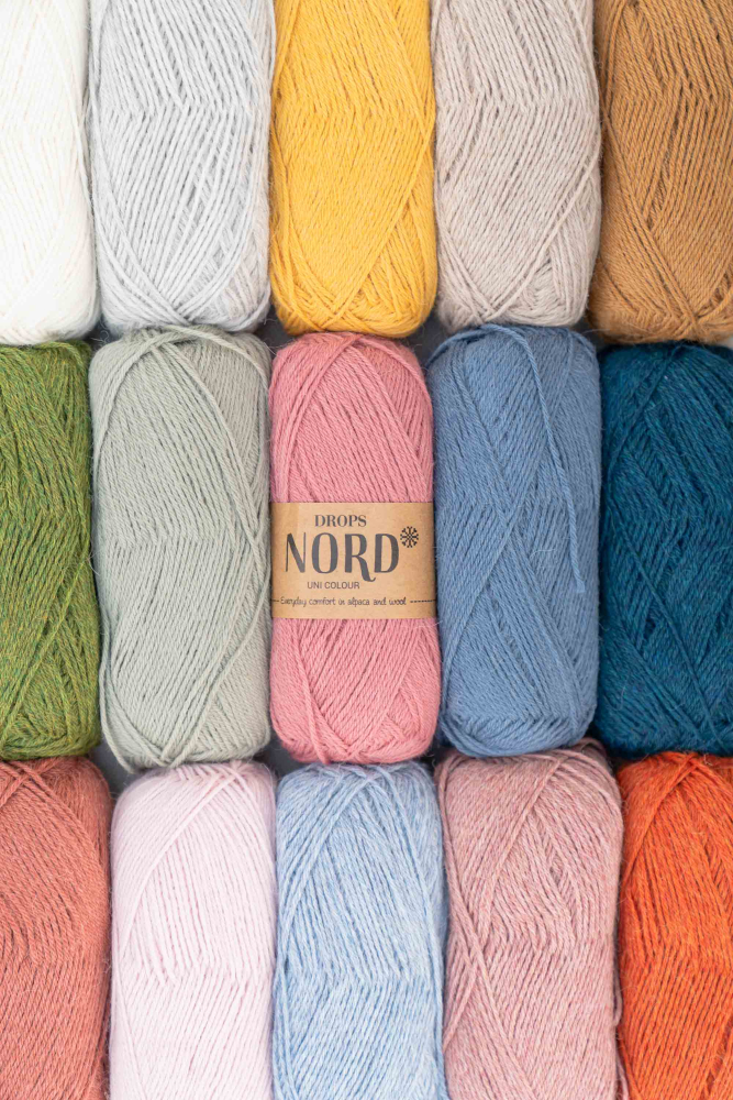10 nøster Drops Nord, med tilfeldig sammensatte farger og partinummer. Kanskje alle er like, kanskje alle er forskjellige. Tør du ta sjansen og se hva som venter i din lykkepose?