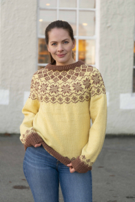 Du kan selv endre farge i strikkepakken ; velg da først størrelsen du ønsker å strikke, så kommer det opp fargevalg nedenfor. NB! Oppskrift vil alltid leveres i strikkepakkens originale farge: Natur og Nougat Melert