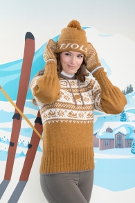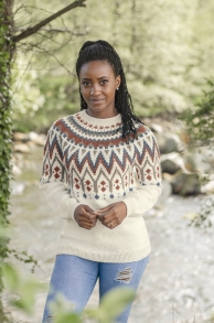 Glattstrikk, rett, vrang, mønster med flere farger. Plagget strikkes rund nedenfra og opp, det klippes opp i sidene til ermehull. Ermene strikkes for seg og monteres på. Symaskin anbefales. Vanskelighetsgrad ; Øvet
