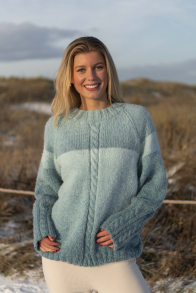 Du kan selv endre farge i strikkepakken ; velg da først størrelsen du ønsker å strikke, så kommer det opp fargevalg nedenfor. NB! Oppskrift vil alltid leveres i strikkepakkens originale farger: Turquoise Sky