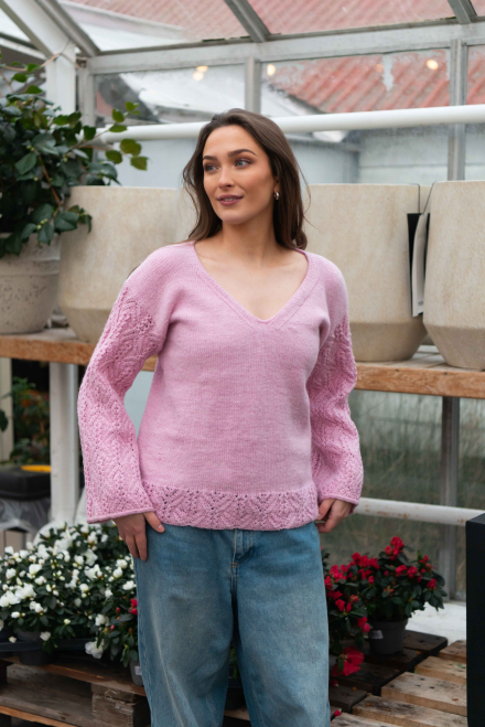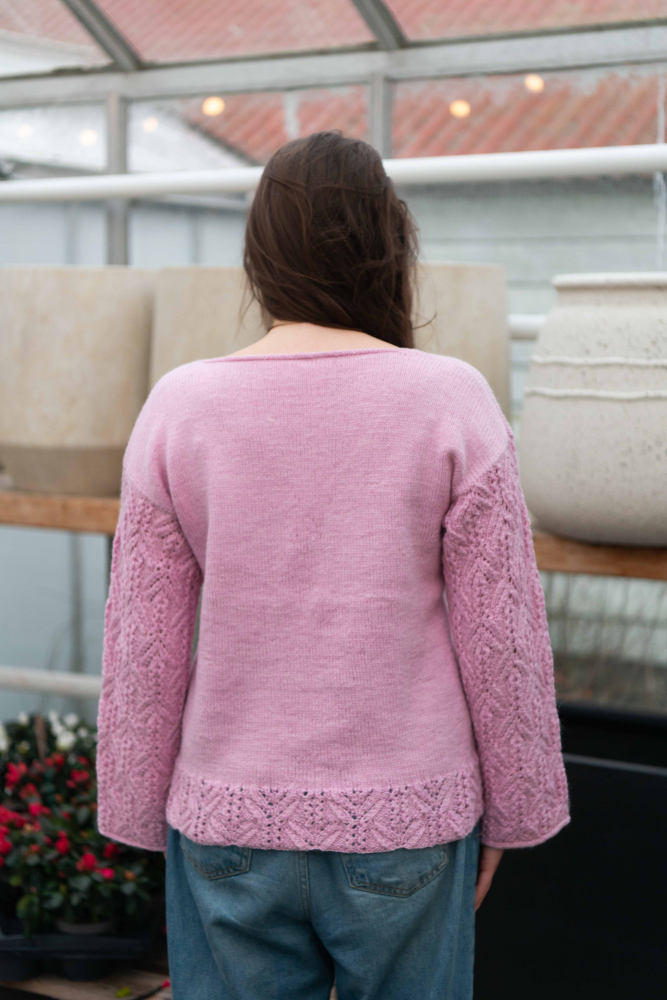 Du kan selv endre farge i strikkepakken ; velg da først størrelsen du ønsker å strikke, så kommer det opp fargevalg nedenfor. NB! Oppskrift vil alltid leveres i strikkepakkens originale farger: Rosa Tåke