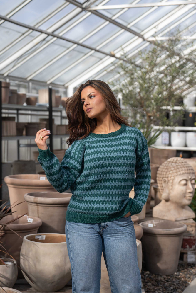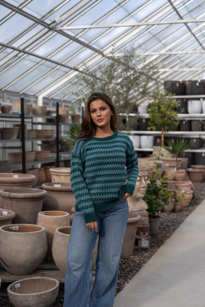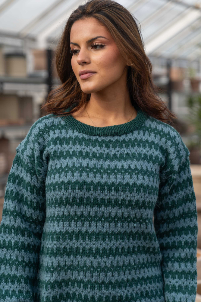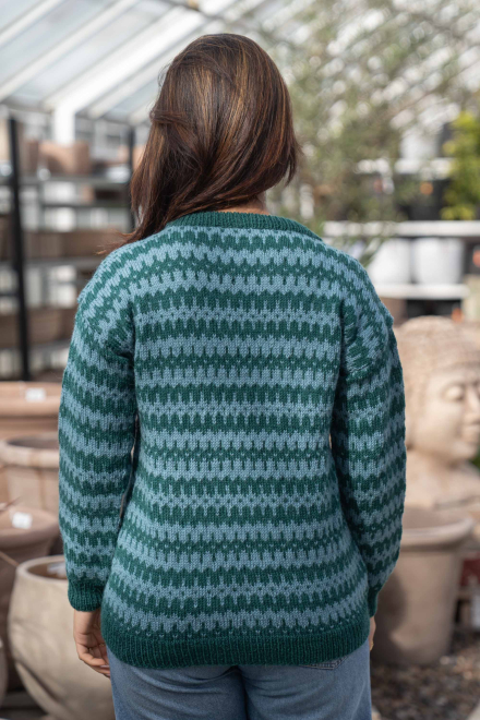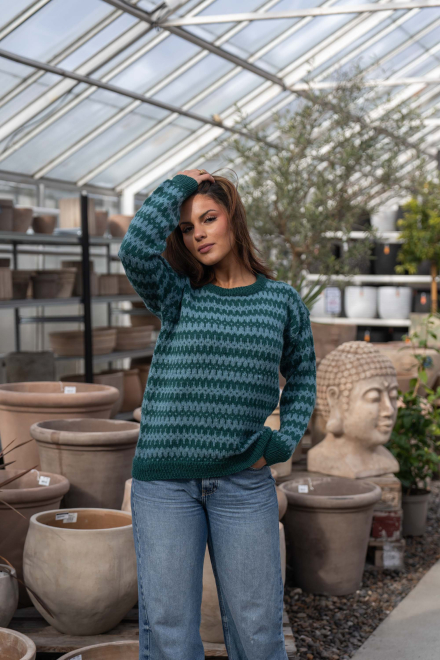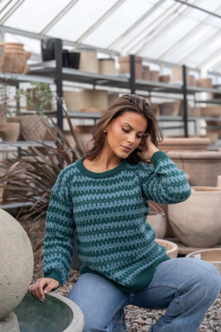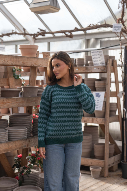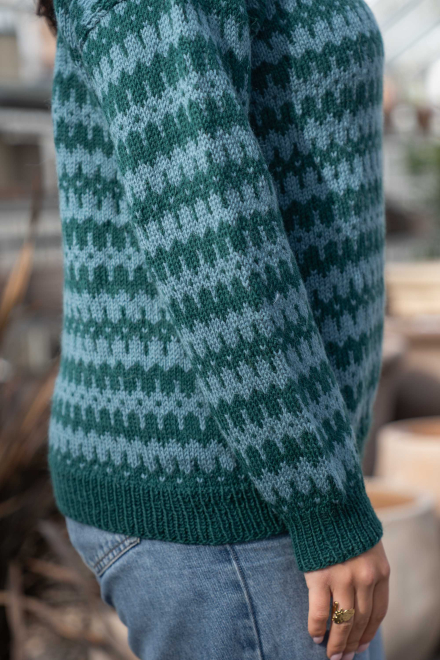 Du kan selv endre farge i strikkepakken ; velg da først størrelsen du ønsker å strikke, så kommer det opp fargevalg nedenfor. NB! Oppskrift vil alltid leveres i strikkepakkens originale farger: Mørk Sjøgrønn og Lys Sjøgrønn