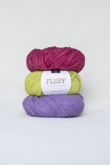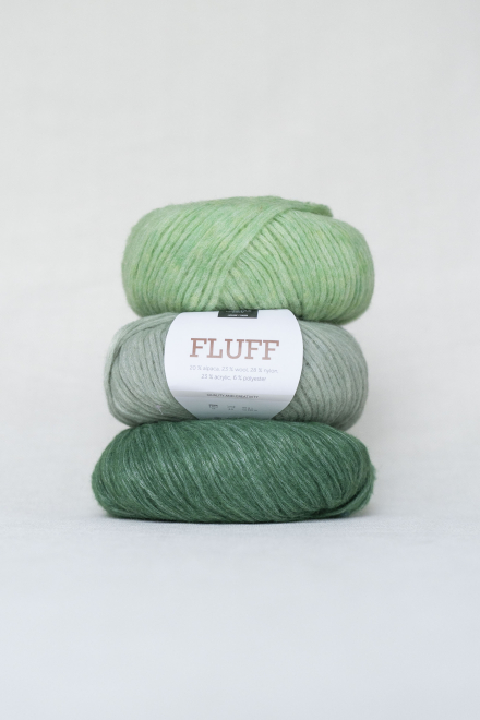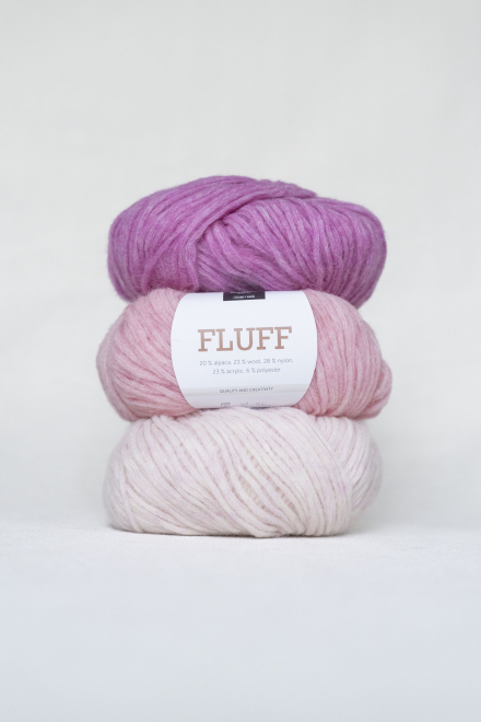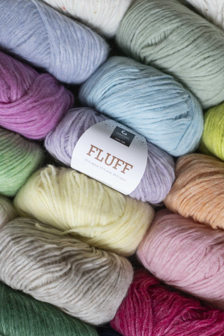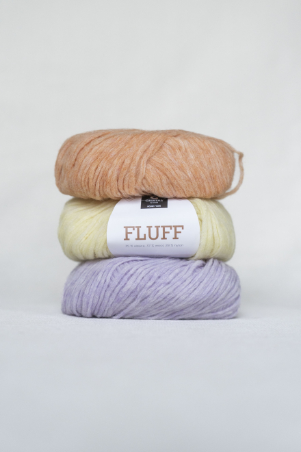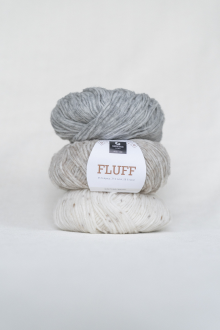Fluff er et supermykt, lett og luftig blowgarn fra Gjestal, som gir lekre plagg med nydelig fall. I dette garnet blandes fibre av alpakka, ull og nylon til en spennende struktur. Fint børstet overflate gjør garnet deilig mykt mot huden.