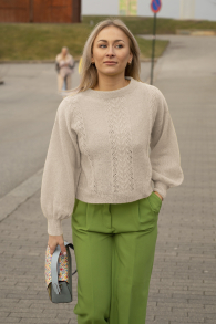 Slik finner du riktig størrelse : Ta mål av et plagg du allerede har, som passer. Sammenlign målene med oppskriften. Velg størrelse ut i fra overvidden på bolen . Lengde på både bol og ermer kan du selvsagt strikke lenger eller kortere ved behov, bare husk å bestill ekstra garn om du vil legge til noe på lengden!