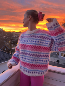 Du kan selv endre farge i strikkepakken ; velg da først størrelsen du ønsker å strikke, så kommer det opp fargevalg nedenfor. NB! Oppskrift vil alltid leveres i strikkepakkens originale farger