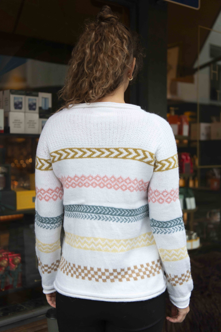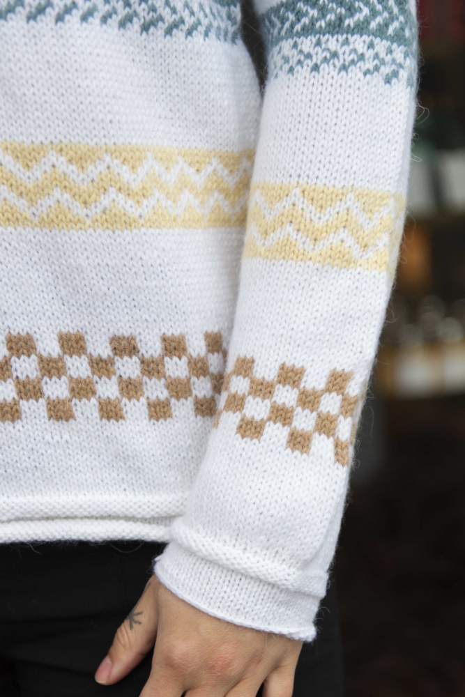 Du kan selv endre farge i strikkepakken ; velg da først størrelsen du ønsker å strikke, så kommer det opp fargevalg nedenfor. NB! Oppskrift vil alltid leveres i strikkepakkens originale farge: Hvit, Vårgrønn, Lys Korall, Lys Sjøgrønn, Vanilje og Kamel