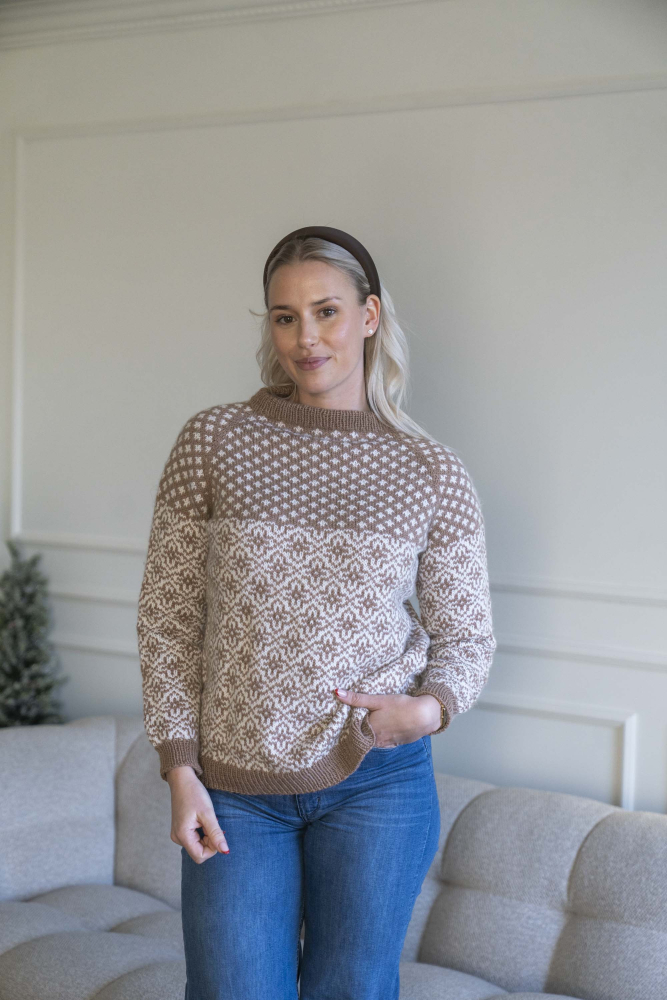 Gann Garn Fauna (40% fineste alpakka, 40% merinoull og 20% nylon). 50 gr = ca 135 m