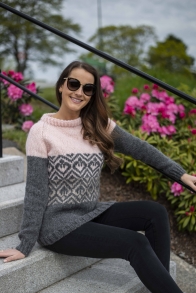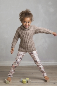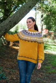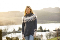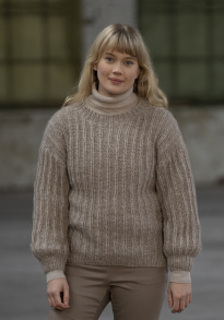 Genser med rundfelling strikket i dobbel tråd ovenfra og ned.