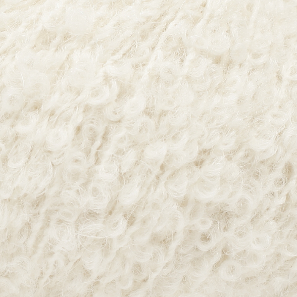 DROPS Alpaca Bouclé er et mykt og flott garn spunnet i superfin alpakka. Fibrene i garnet er ubehandlet, hvilket betyr at det kun er vasket og ikke er utsatt for kjemisk behandling før farging. Dette fremhever fibrenes naturlige egenskaper, samtidig som det gir en bedre form og tekstur. “Bouclé” er fransk for løkke og refererer til alle de små løkkene av ren alpakka som former nøstet. Bindetråden er en blanding av ull og nylon og gjør garnet ekstra sterkt. Garnet er spunnet av 2 tråder og kombinasjonen av alpakka og bouclé gir et meget mykt garn med utmerket ytelse og fantastisk effekt. Plagg strikket i DROPS Alpaca Bouclé er lette og luftige. DROPS Alpaca Bouclé består i tillegg til ensfargede farger av mix-farger. Mix-farger produseres ved å karde fargene sammen før garnet spinnes.