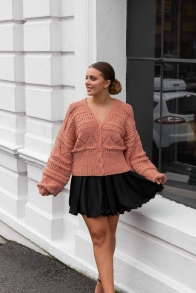 Lettstrikket oversized genser med splitt nede. Strikkes i dobbelt garn.
