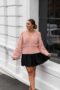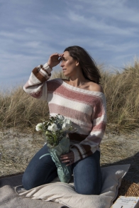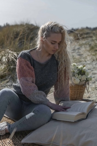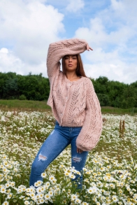 Oversized genser i dobbelt garn med enkelt hullmønster og rette isydde ermer.