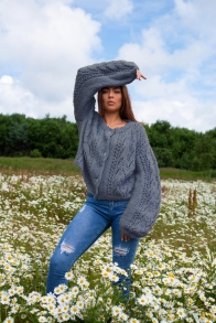 Lettstrikket oversized genser med splitt nede. Strikkes i dobbelt garn.