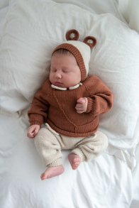 Du kan selv endre farge i strikkepakken ; velg da først størrelsen du ønsker å strikke, så kommer det opp fargevalg nedenfor. NB! Oppskrift vil alltid leveres i strikkepakkens originale farger: Mocca Mousse, Natur, Koksgrå og Rosa Tåke