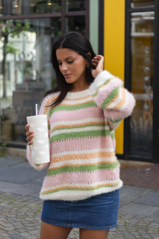 Du kan selv endre farge i strikkepakken ; velg da først størrelsen du ønsker å strikke, så kommer det opp fargevalg nedenfor. NB! Oppskrift vil alltid leveres i strikkepakkens originale farge: Hvit, Grønn, Aprikos og Lys Rosa