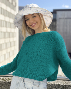 Slik finner du riktig størrelse : Ta mål av et plagg du allerede har, som passer. Sammenlign målene med oppskriften. Velg størrelse ut i fra overvidden på bolen . Lengde på både bol og ermer kan du selvsagt strikke lenger eller kortere ved behov, bare husk å bestill ekstra garn om du vil legge til noe på lengden!