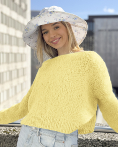 Du kan selv endre farge i strikkepakken ; velg da først størrelsen du ønsker å strikke, så kommer det opp fargevalg nedenfor. NB! Oppskrift vil alltid leveres i strikkepakkens originale farger: Light Yellow og White