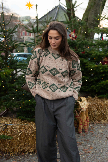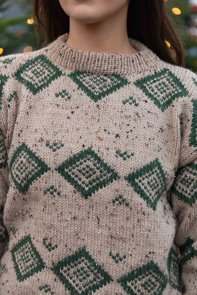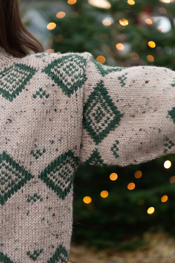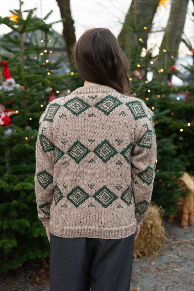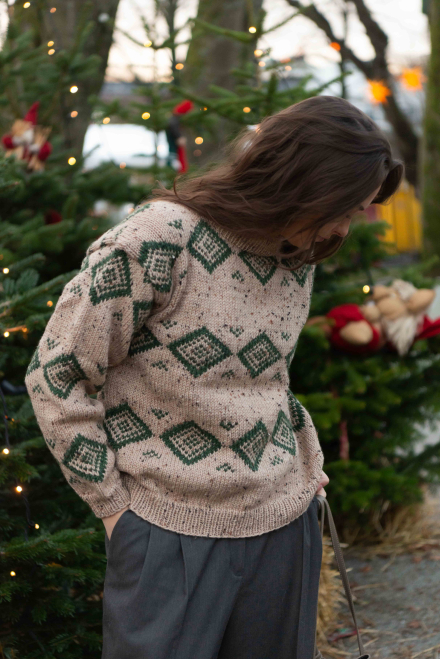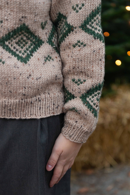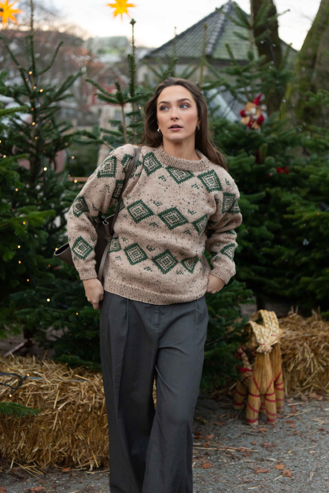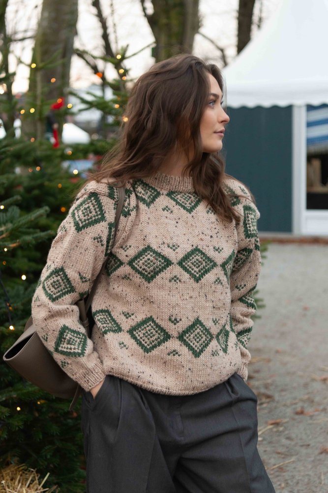 Du kan selv endre farge i strikkepakken ; velg da først størrelsen du ønsker å strikke, så kommer det opp fargevalg nedenfor. NB! Oppskrift vil alltid leveres i strikkepakkens originale farger: Lys Beige og Furugrønn