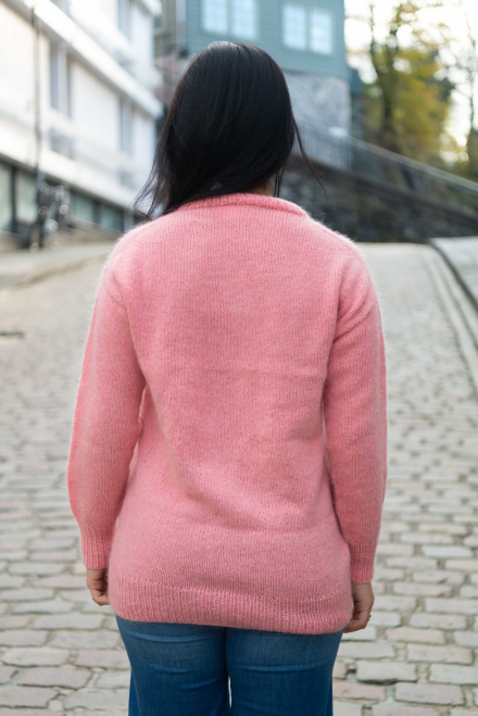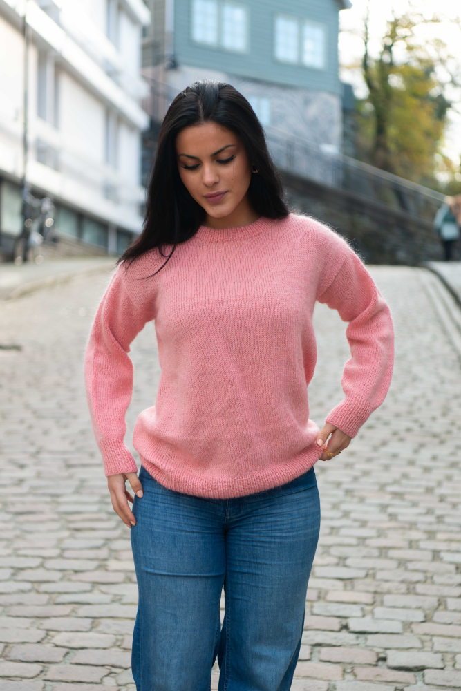 Du kan selv endre farge i strikkepakken ; velg da først størrelsen du ønsker å strikke, så kommer det opp fargevalg nedenfor. NB! Oppskrift vil alltid leveres i strikkepakkens originale farge: Korall og Lys Korall