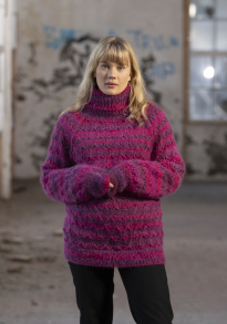 Du kan selv endre farge i strikkepakken ; velg da først størrelsen du ønsker å strikke, så kommer det opp fargevalg nedenfor. NB! Oppskrift vil alltid leveres i strikkepakkens originale farge: Cerise og Hvit