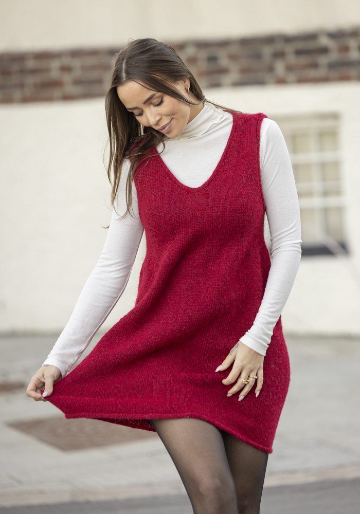 Du kan selv endre farge i strikkepakken ; velg da først størrelsen du ønsker å strikke, så kommer det opp fargevalg nedenfor. NB! Oppskrift vil alltid leveres i strikkepakkens originale farger: Rød