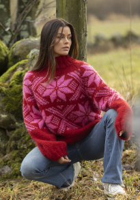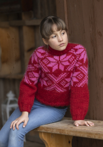Du kan selv endre farge i strikkepakken ; velg da først størrelsen du ønsker å strikke, så kommer det opp fargevalg nedenfor. NB! Oppskrift vil alltid leveres i strikkepakkens originale farge: Rosa og Hvit