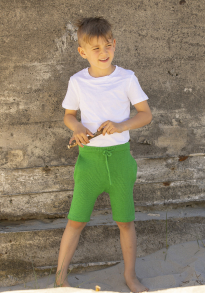 Rett, vrang, i-cord.  Plagget strikkes rundt nedenfra og opp, og deles ved ermehullene for så å strikkes frem og tilbake. Vanskelighetsgrad;  Lett Øvet