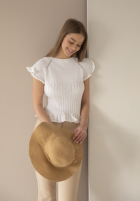 Slik finner du riktig størrelse : Ta mål av et plagg du allerede har, som passer. Sammenlign målene med oppskriften. Velg størrelse ut i fra overvidden på bolen . Lengde på både bol og ermer kan du selvsagt strikke lenger eller kortere ved behov, bare husk å bestill ekstra garn om du vil legge til noe på lengden!