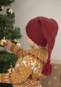 Du kan selv endre farge i strikkepakken ; velg da først størrelsen du ønsker å strikke, så kommer det opp fargevalg nedenfor. NB! Oppskrift vil alltid leveres i strikkepakkens originale farge: Burgunder, Naturhvit og Okergul