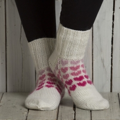 Du kan selv endre farge i strikkepakken ; velg da først størrelsen du ønsker å strikke, så kommer det opp fargevalg nedenfor. NB! Oppskrift vil alltid leveres i strikkepakkens originale farge: Hvit, Lys Lilla, Lys Oransje, Oransje, Gul, Lys Grønn og Lys Petrol