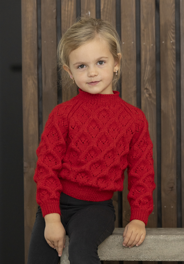 Du kan selv endre farge i strikkepakken ; velg da først størrelsen du ønsker å strikke, så kommer det opp fargevalg nedenfor. NB! Oppskrift vil alltid leveres i strikkepakkens originale farger: Rød