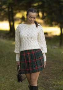 Slik finner du riktig størrelse : Ta mål av et plagg du allerede har, som passer. Sammenlign målene med oppskriften. Velg størrelse ut i fra overvidden på bolen . Lengde på både bol og ermer kan du selvsagt strikke lenger eller kortere ved behov, bare husk å bestill ekstra garn om du vil legge til noe på lengden!
