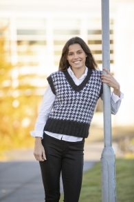Glattstrikk, rett, vrang, hullmønster/struktur./ Plagget strikkes rundt nedenfra og opp, og har raglansfelling på bærestykket. /  Vanskelighetsgrad; Lett Øvet
