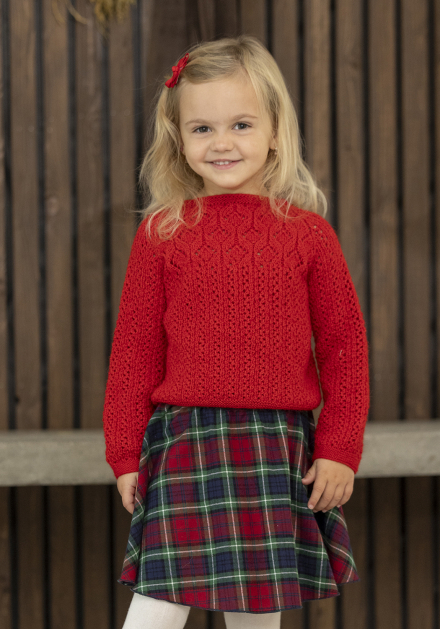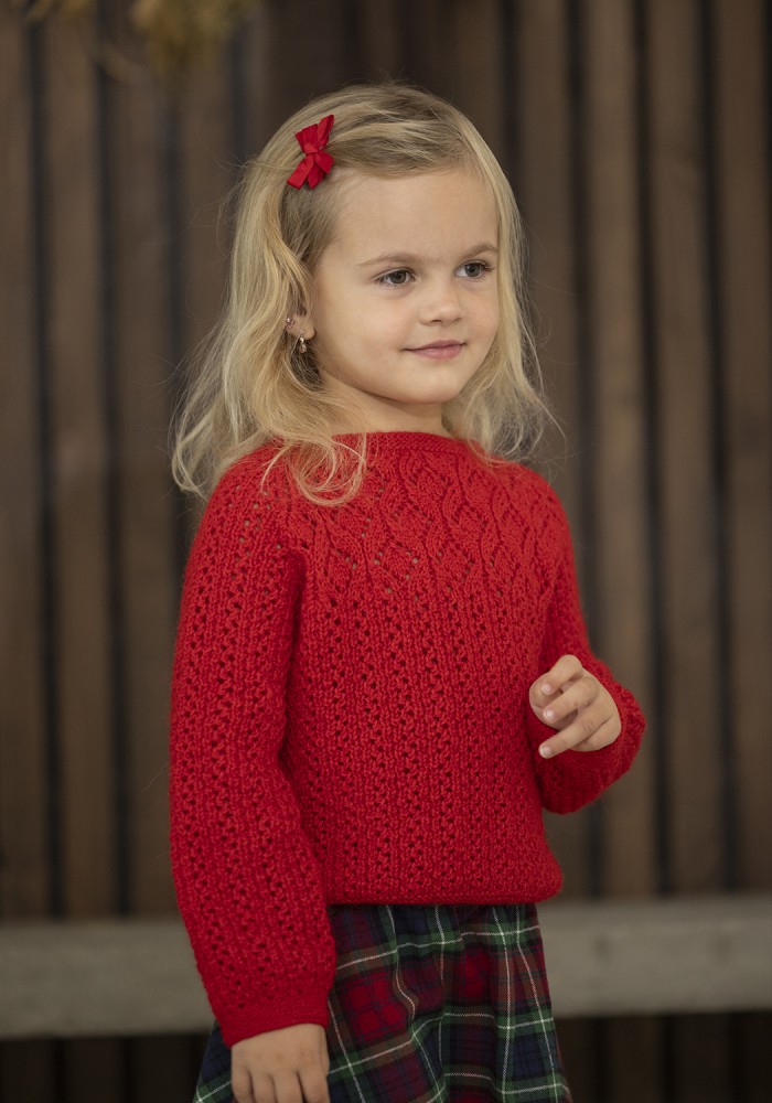 Du kan selv endre farge i strikkepakken ; velg da først størrelsen du ønsker å strikke, så kommer det opp fargevalg nedenfor. NB! Oppskrift vil alltid leveres i strikkepakkens originale farger: Rød