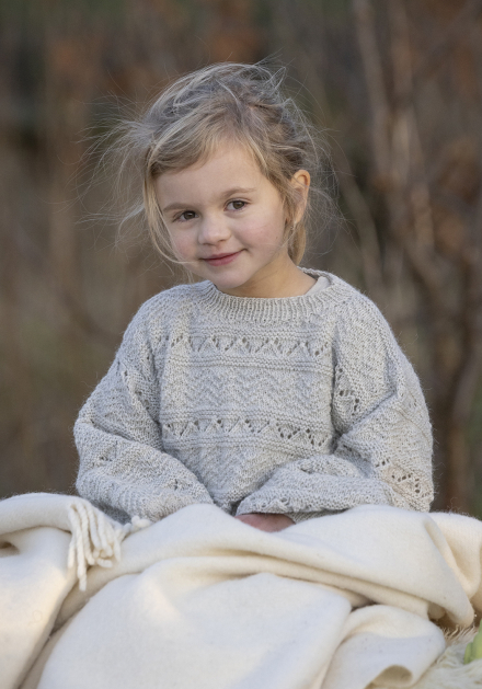 Du kan selv endre farge i strikkepakken ; velg da først størrelsen du ønsker å strikke, så kommer det opp fargevalg nedenfor. NB! Oppskrift vil alltid leveres i strikkepakkens originale farger: Perlegrå