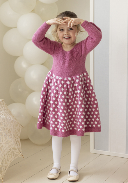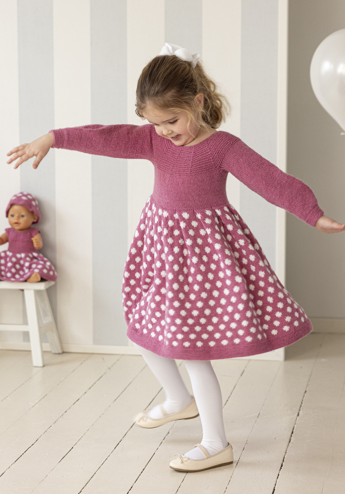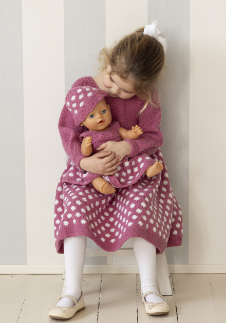 Du kan selv endre farge i strikkepakken ; velg da først størrelsen du ønsker å strikke, så kommer det opp fargevalg nedenfor. NB! Oppskrift vil alltid leveres i strikkepakkens originale farge: Rosa og Hvit