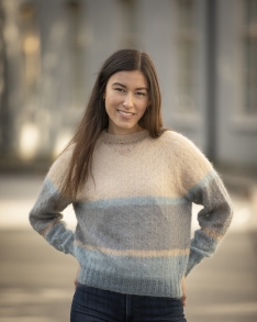 Strikkefasthet: 14 m glattstrikk i bredden med 2 tråder Kid Silk + 1 tråd Alpaca Liten Storm på pinne nr 7 måler ca 10 cm. Husk at strikkefastheten må holdes hvis resultatet skal bli vellykket.