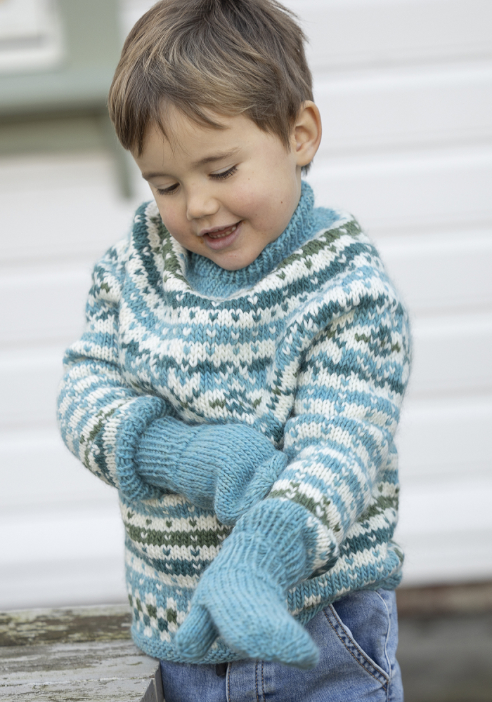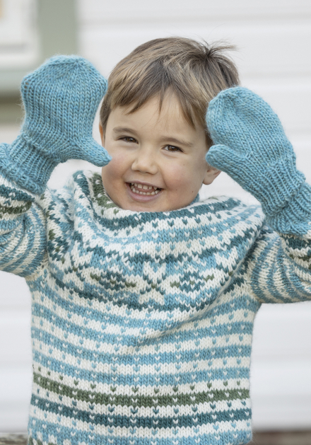 Du kan selv endre farge i strikkepakken ; velg da først størrelsen du ønsker å strikke, så kommer det opp fargevalg nedenfor. NB! Oppskrift vil alltid leveres i strikkepakkens originale farger: Turkis