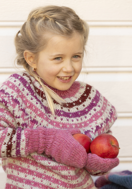 Du kan selv endre farge i strikkepakken ; velg da først størrelsen du ønsker å strikke, så kommer det opp fargevalg nedenfor. NB! Oppskrift vil alltid leveres i strikkepakkens originale farger: Rosa