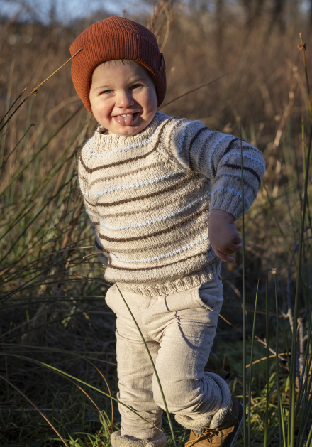 Du kan selv endre farge i strikkepakken ; velg da først størrelsen du ønsker å strikke, så kommer det opp fargevalg nedenfor. NB! Oppskrift vil alltid leveres i strikkepakkens originale farger: Sand, Lys Brun, Brun og Lys Blå